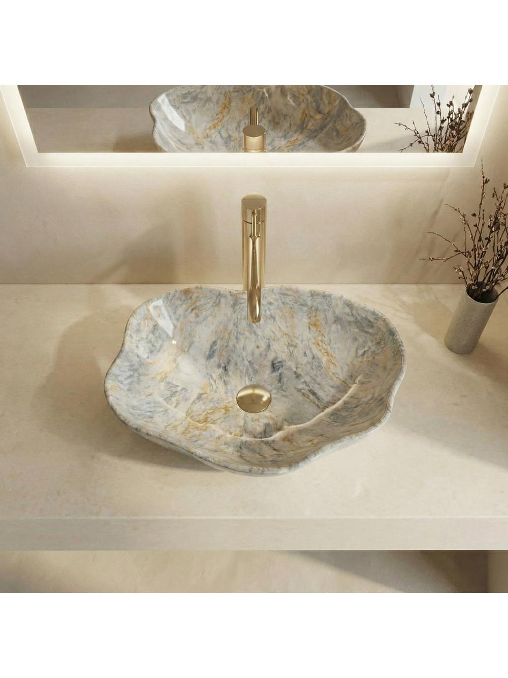 Fabricat din ceramică glazurată, acest lavoar asigură o finisare perfect netedă, rezistență la zgârieturi și ușurință în întreținerea igienei. Poate fi montat pe blat sau pe mobilier, oferind posibilitatea de a evidenția forma sa decorativă. Versatil în amenajare, armonizează perfect cu baterii aurii sau din cupru, potrivindu-se perfect interioarelor loft sau moderne.