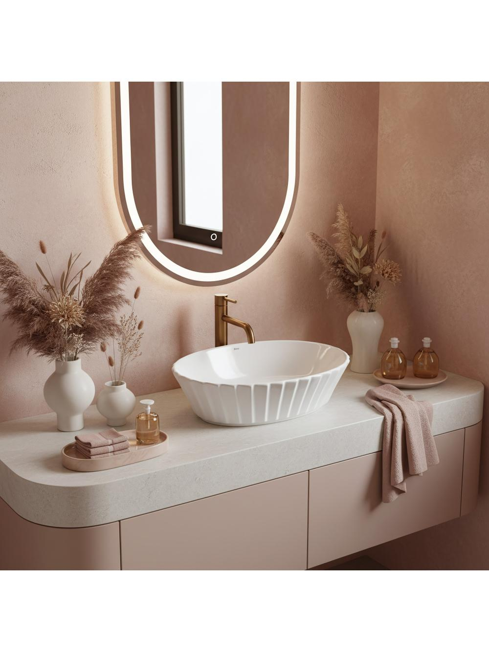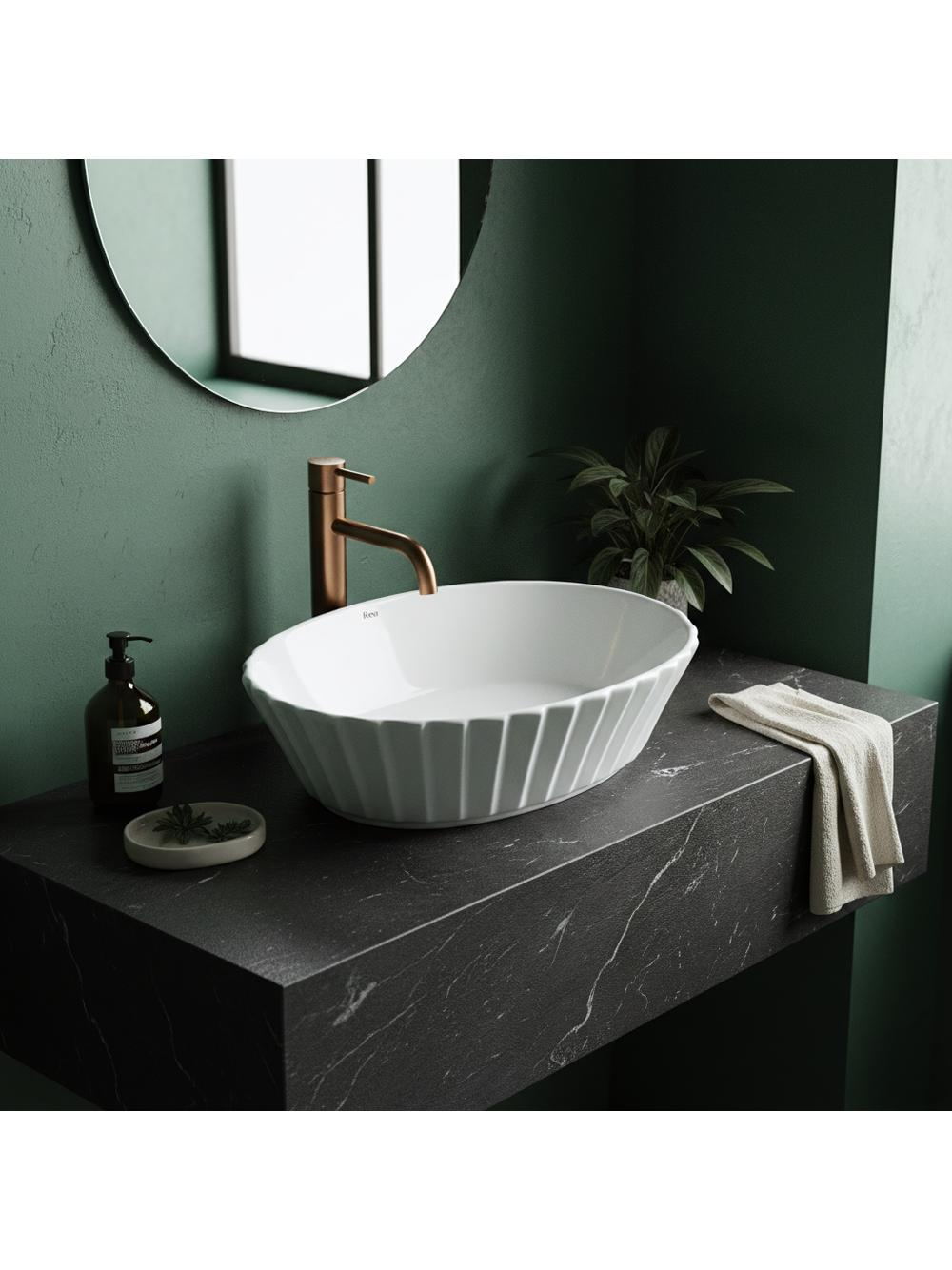 În căutarea eleganței clasice cu un strop modern? Alege lavoarul pe blat Rea Samanta pentru un design imaculat alb care se remarcă prin forma canelată, aducând o notă subtilă și ușoară. Structură canelată, ceramică albă lucioasă și formă ovală confortabilă fac din acest lavoar o alegere ideală pentru interioare glamour, clasice sau modern-classic. Optează pentru acest model pentru a aduce prospețime și rafinament în baia ta!