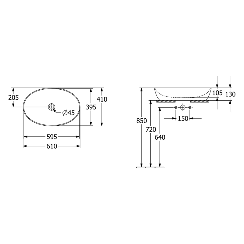 lavoar pe blat, oval, fara orificiu pentru baterie, fara orificiu de preaplin