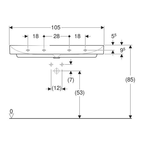 Specificatii tehnice Lavoar pe mobilier Geberit One 105 cm alb lucios KeraTect cu orificiu baterie: