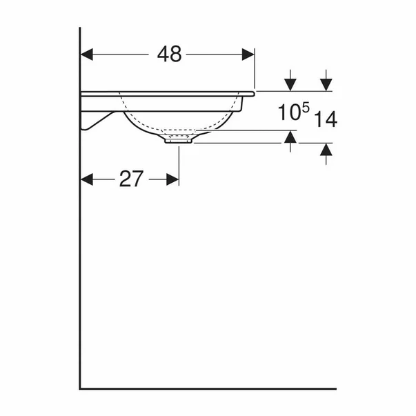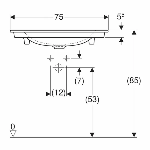 Specificatii tehnice Lavoar pe mobilier Geberit One Slim 75 cm alb lucios KeraTect cu orificiu baterie: