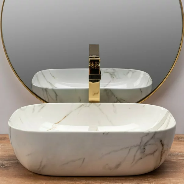 Lavoar pe blat Rea Belinda Aiax marmura alb 46 cm