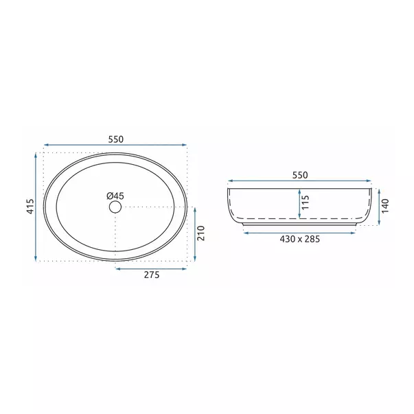 Specificatii tehnice Lavoar pe blat Rea Queen Carrara oval finisaj alb marmura lucios 55 cm: