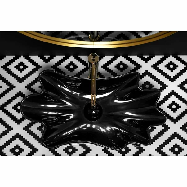 Lavoar pe blat Rea Infinity negru lucios 63 cm cu ventil Click-Clack