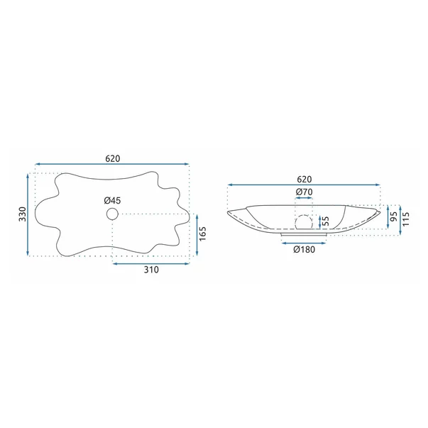 Lavoarul Rea are o formă ovală, ondulată și un finisaj lucios, fiind ideal pentru cei care apreciază originalitatea și eleganța. Este conceput pentru montarea pe blat și este fabricat din cea mai înaltă calitate de ceramică. Ușor de curățat și întreținut, aduce un plus de eleganță în designul băii, fie acasă, fie la birou.