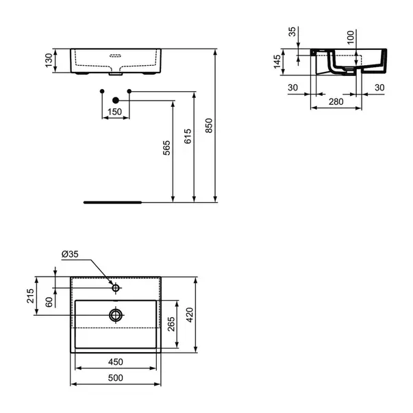 Specificatii tehnice Lavoar semiincastrat Ideal Standard Atelier Extra alb lucios 50 cm: