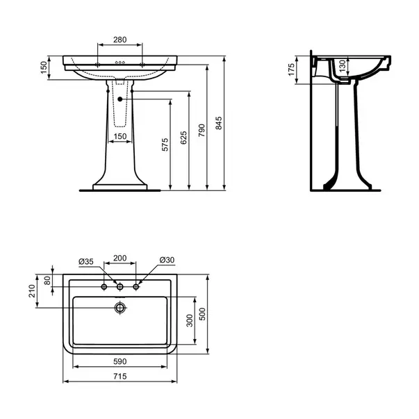 Specificatii tehniceLavoar suspendat Ideal Standard Atelier Calla alb lucios 72 cm cu 3 orificii baterie si preaplin: