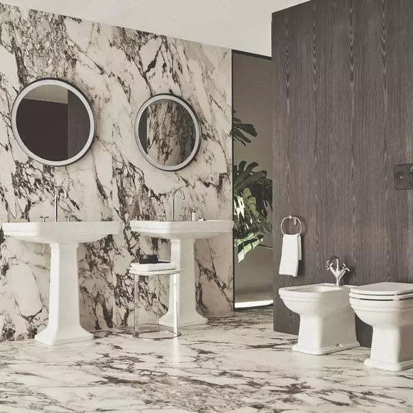 Colectia Calla, dezvoltata de Ludovica si Roberto Palmoba, imbina trasaturile clasice cu elemente subtile, contemporane. Cu un aer elegant, aceasta colectie emana rafinament, chiar si in spatiile mici. Designul neoclasic al colectiei sugereaza un lux discret si modest, evitand opulenta si extravaganta, insa transmite o eleganta intemporeala.