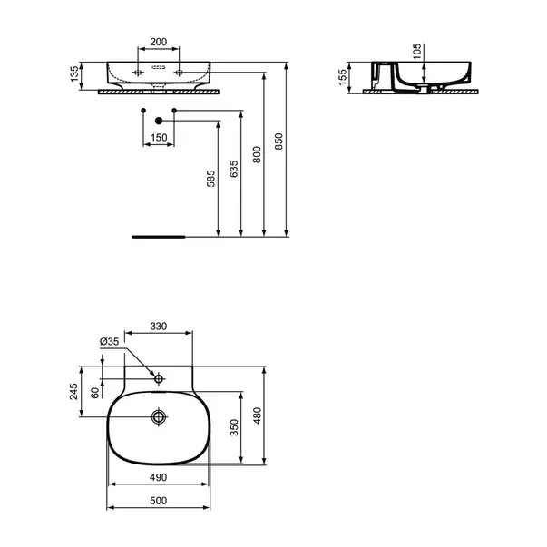 Specificatii tehnice Lavoar suspendat Ideal Standard Atelier Linda-X cu orificiu baterie si preaplin 50 cm alb lucios: