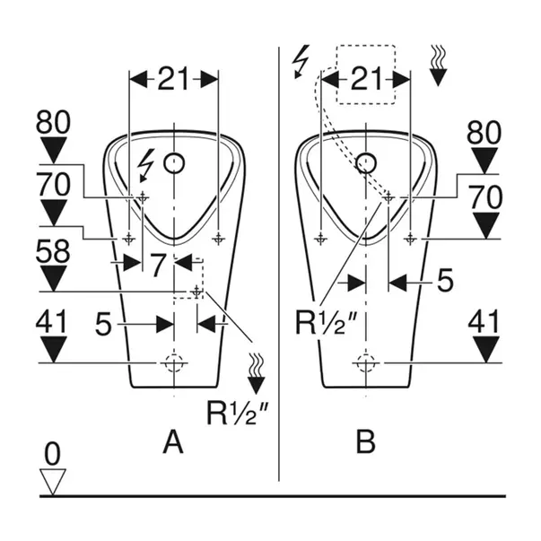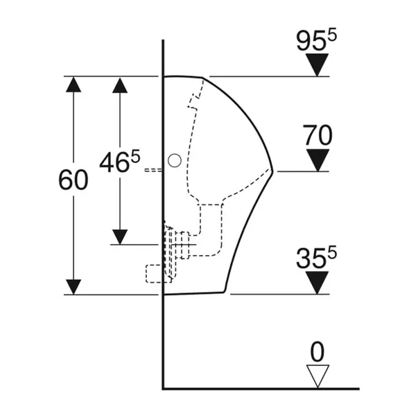 Specificatii tehnice Pisoar cu alimentare ascunsa Geberit Narva si evacuare spate sau jos: