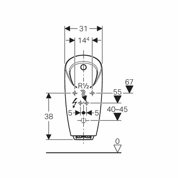 Specificatii tehnice Pisoar cu alimentare ascunsa Geberit Preda si actionare electronica integrata: