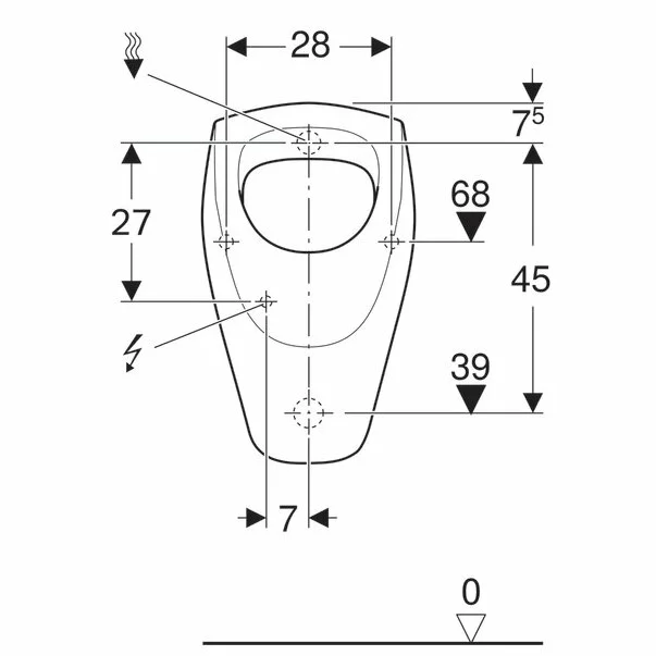 Specificatii tehnice Pisoar cu alimentare ascunsa Geberit Selnova: