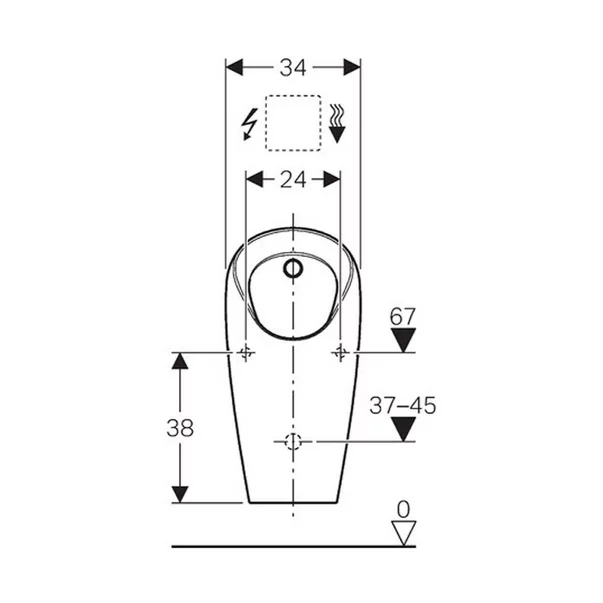 Specificatii tehnice Pisoar cu alimentare ascunsa Geberit Selva si actionare electronica incastrata:
