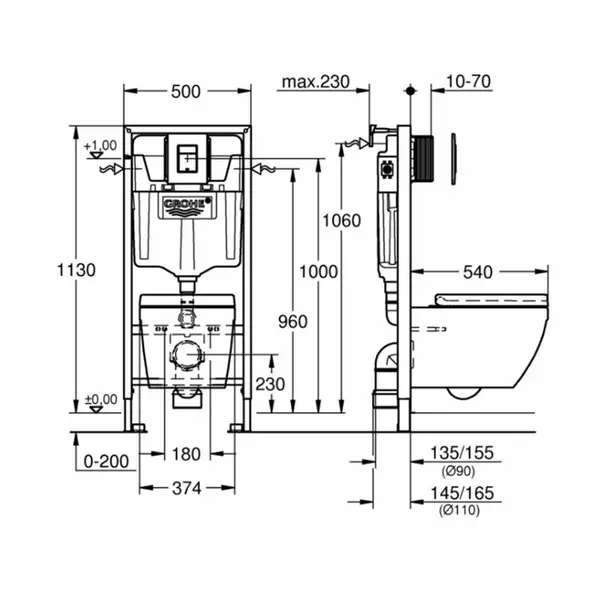 Specificatii tehnice Set vas WC suspendat cu capac Grohe Euro Ceramic rezervor incastrat Solido 5 in 1 cu clapeta neagra Skate Cosmopolitan: