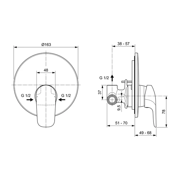 Baterie dus incastrata Ideal Standard Ceraflex cu corp ingropat crom:
