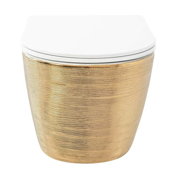 Specificatii tehnice Set vas wc suspendat Rea Carlo rimless auriu periat cu capac softclose: