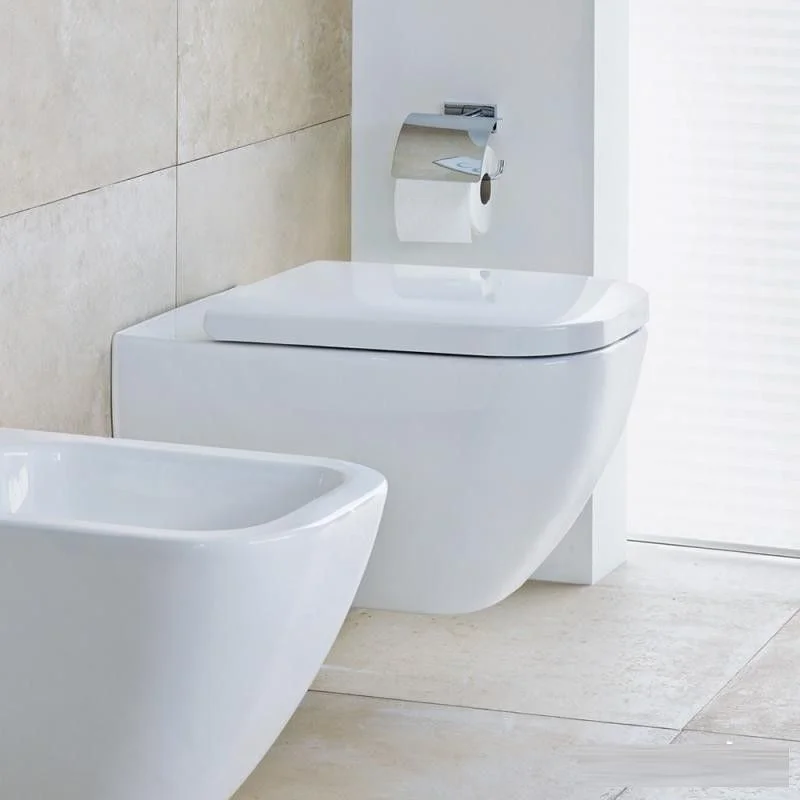 Descoperă designul modern și funcțional al vasului de toaletă suspendat Duravit Happy D.2 Rimless, cu dimensiuni compacte de 37x54 cm și evacuare orizontală. Alege calitatea și eleganța pentru baia ta!