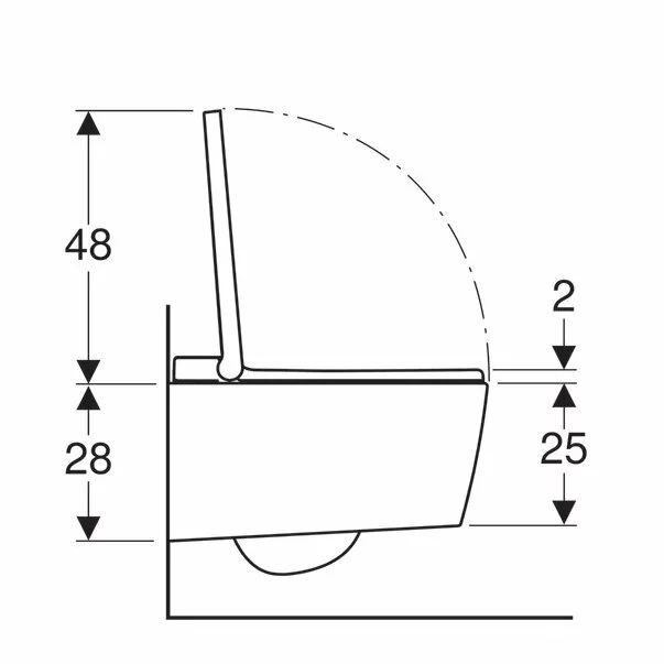 - Alimentare de la rețea cu cablu trifilar flexibil cu manta, lateral dreapta, acoperit, în spatele vasului de ceramică WC