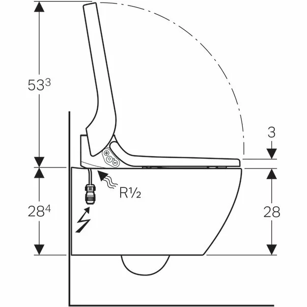 - Compatibilitate cu aplicația Geberit AquaClean pentru ajustarea temperaturii apei, a uscătorului și a încălzitorului de capac.