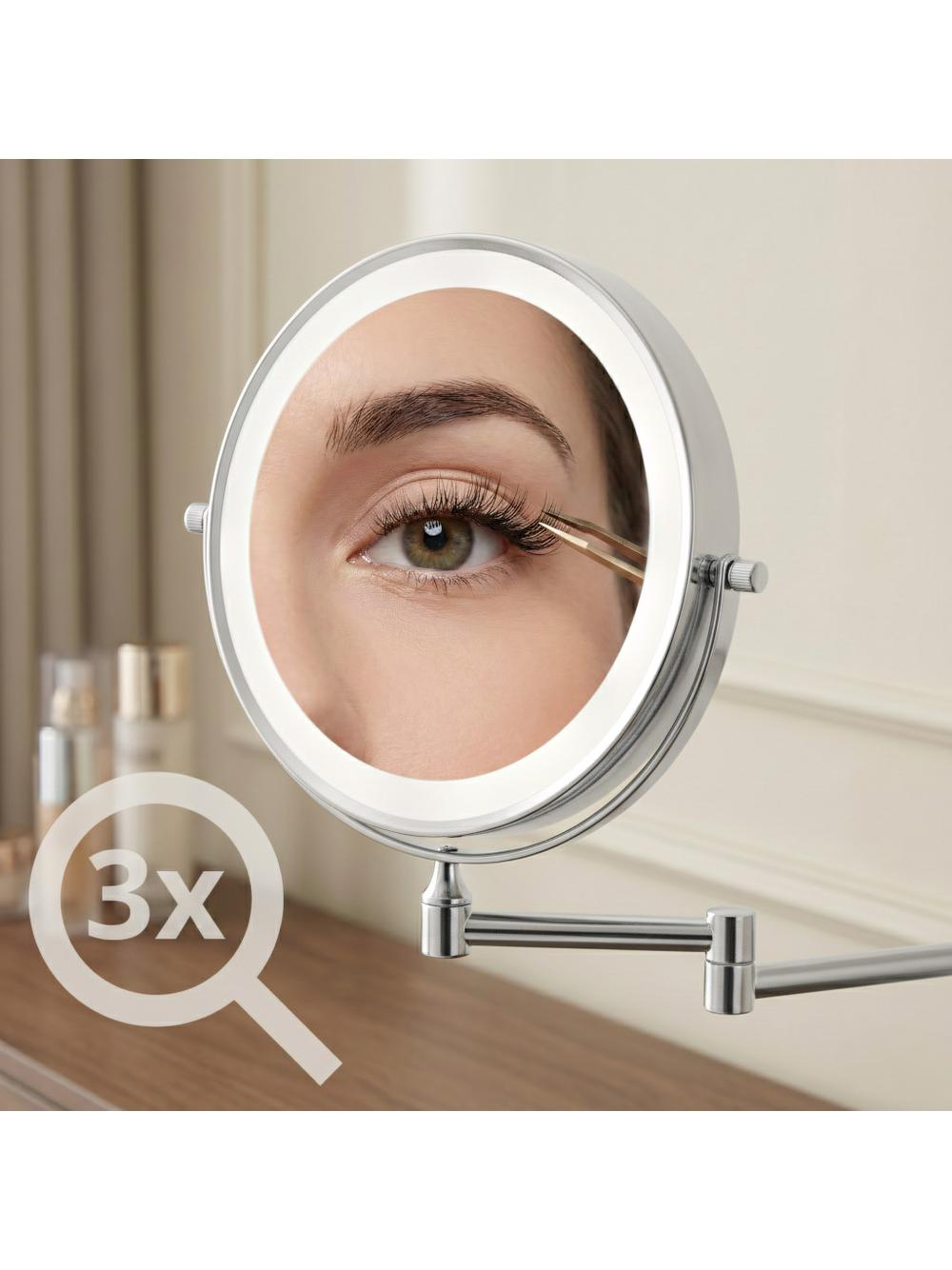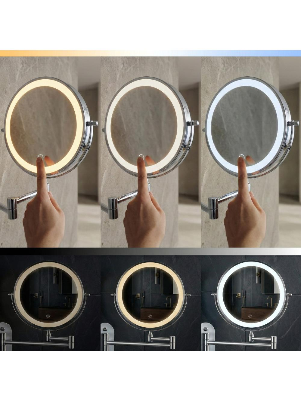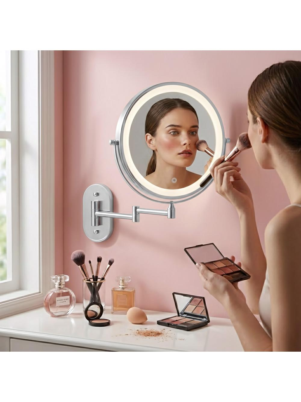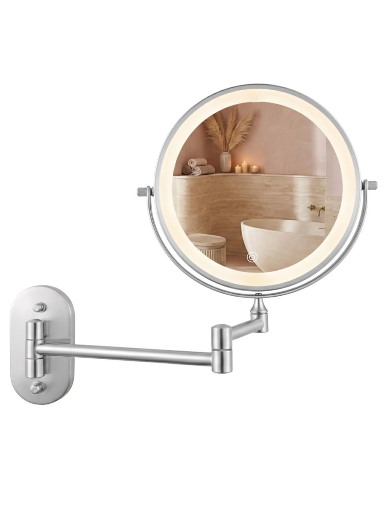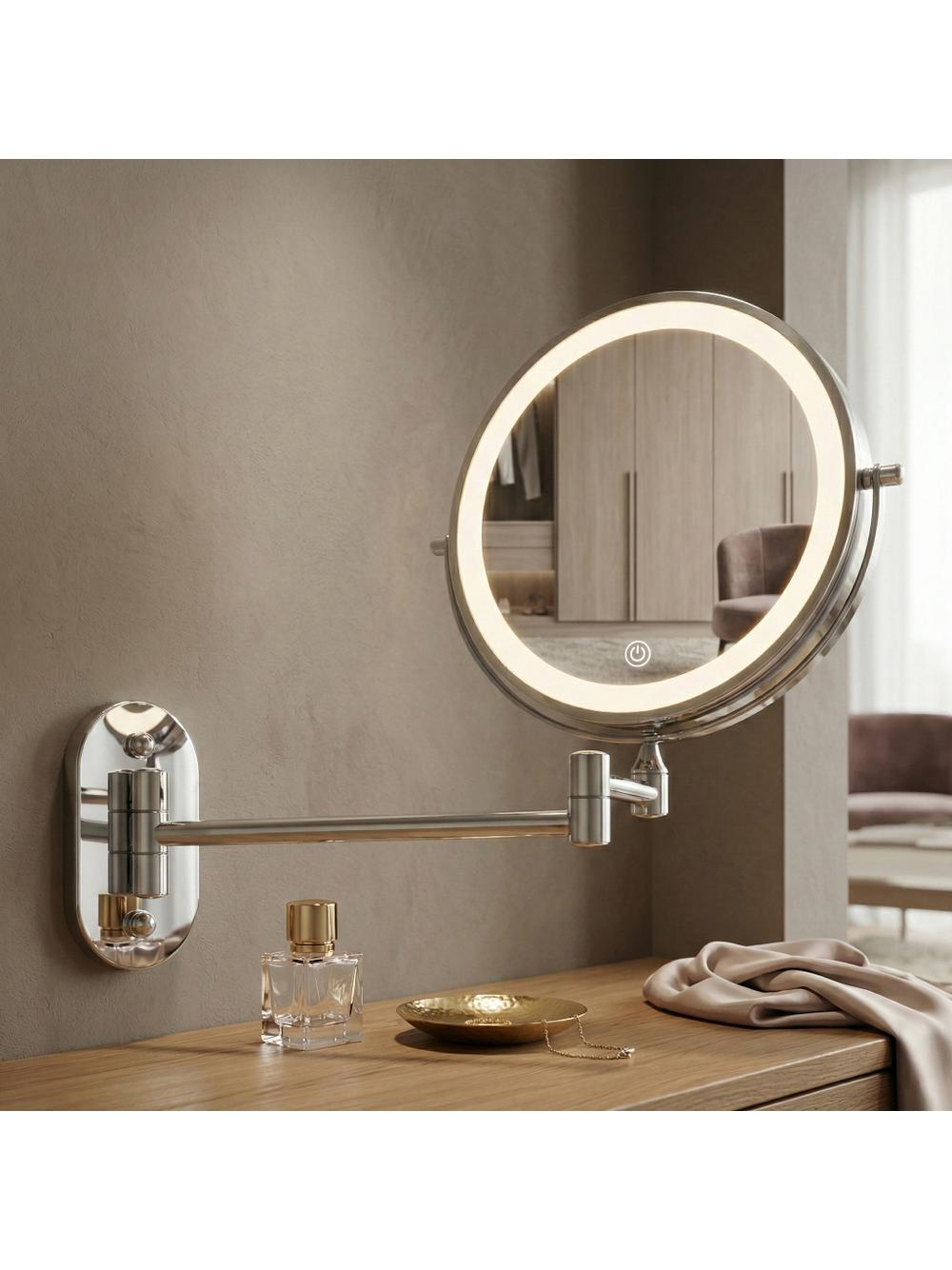 Oglinda de perete cu LED-uri pentru machiaj - o soluție practică și elegantă potrivită pentru baie, dressing sau masa de toaletă. Cu un design modern și o funcționalitate ridicată, această oglindă dublă față, cu braț rabatabil, este ideală pentru machiaj, bărbierit și îngrijire de precizie.