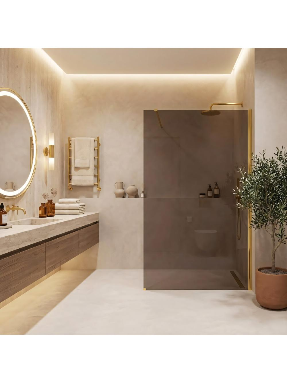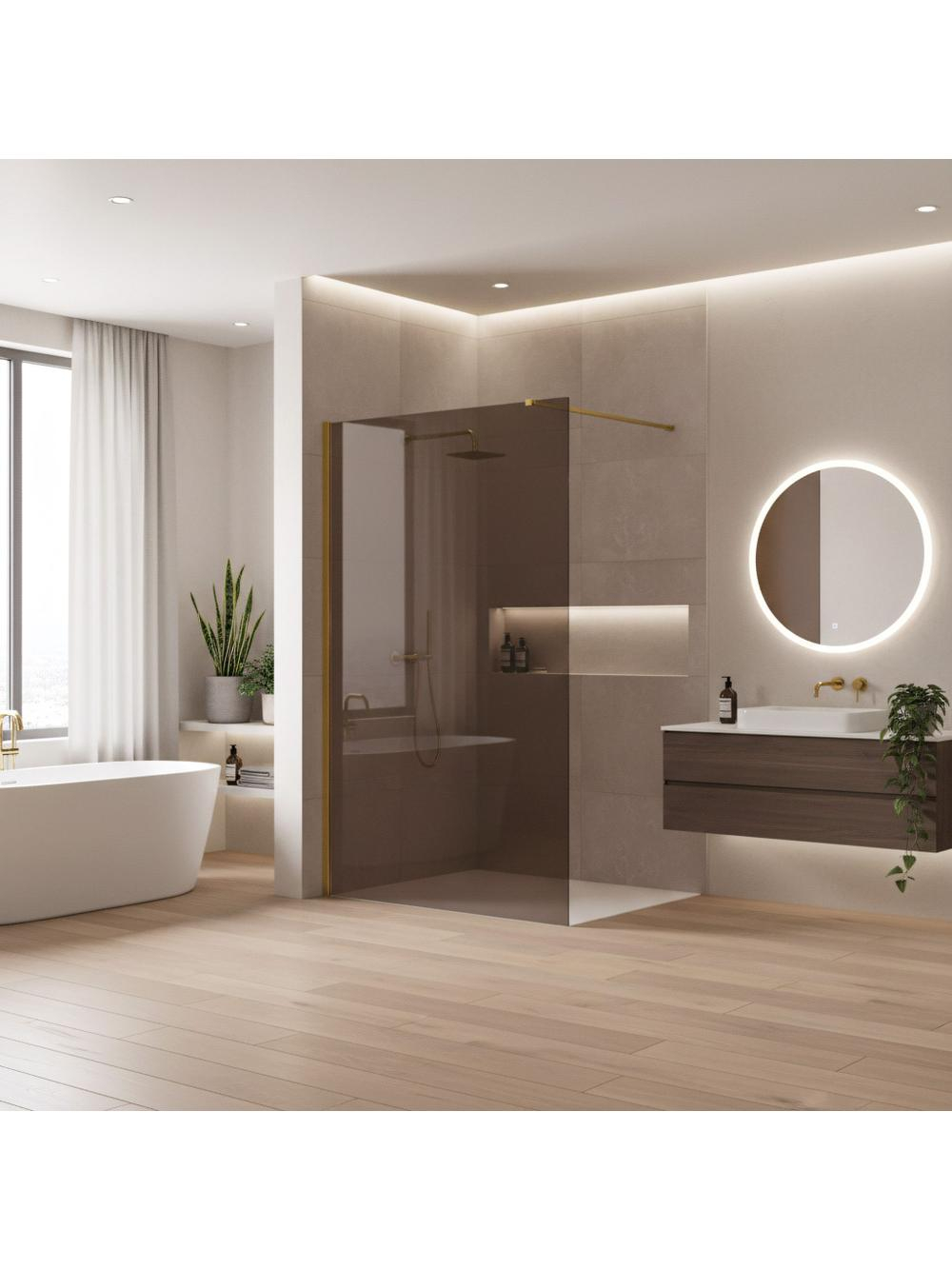 Creați o baie luxurioasă cu peretele de duș walk-in Rea Flexi, disponibil în nuanța Maro Fumé și profilul Auriu Lucios. Această combinație elegantă de culori aduce un aspect sofisticat în spațiul dvs. de baie. Construcția din sticlă securizată de 8 mm oferă stabilitate și siguranță, iar detaliile strălucitoare completează aspectul elegant al acestui perete de duș. Cu un strat Easy Clean hidrofob și braț de susținere ajustabil, Rea Flexi este o opțiune practică și elegantă pentru baia dvs. Montajul universal și designul walk-in asigură o experiență spațioasă și confortabilă. Optați pentru peretele de duș Rea Flexi pentru a aduce un amestec perfect între clasic și modern în baia dvs.