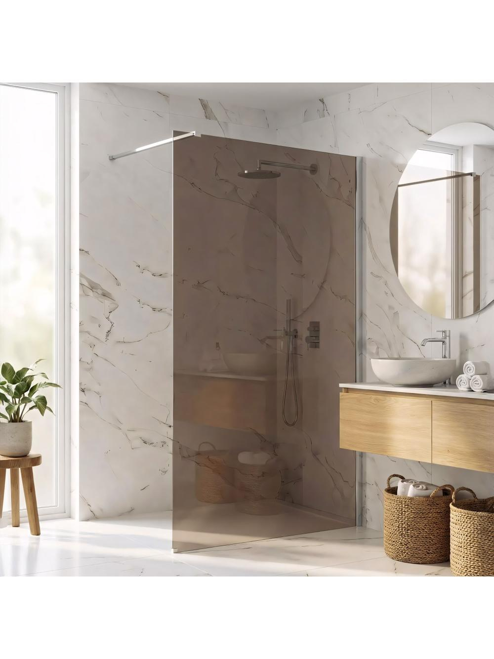 Optează pentru eleganța atemporală în baia ta cu panoul de duș walk-in Rea Flexi în configurația: sticlă Smoked Brown și profil în culoare Crom. Această combinație perfectă între tradiție și modernitate aduce un aer sofisticat în baia ta. Construcția din sticlă securizată de 8 mm oferă stabilitate și siguranță în timpul utilizării. Panoul solid cu nuanță maronie creează o atmosferă caldă și discreție în timpul dușului. Profilul din aluminiu Crom aduce un finisaj clasic și lucios care se potrivește de minune cu bateriile sanitare tradiționale. Stratul Easy Clean împiedică depunerile de calcar și facilitează curățarea. Brațul de susținere 120 cm, ajustabil în lungime, asigură stabilitate, iar montajul universal îți oferă flexibilitate în instalare. Construcția walk-in fără uși oferă acces liber și un aspect modern. Panoul de duș Rea Flexi este alegerea ideală pentru cei care apreciază soluțiile testate într-o interpretare contemporană, oferind un spațiu elegant și funcțional. Cu stratul Easy Clean și componentele rezistente, acest produs garantează confort și durabilitate pe termen lung.