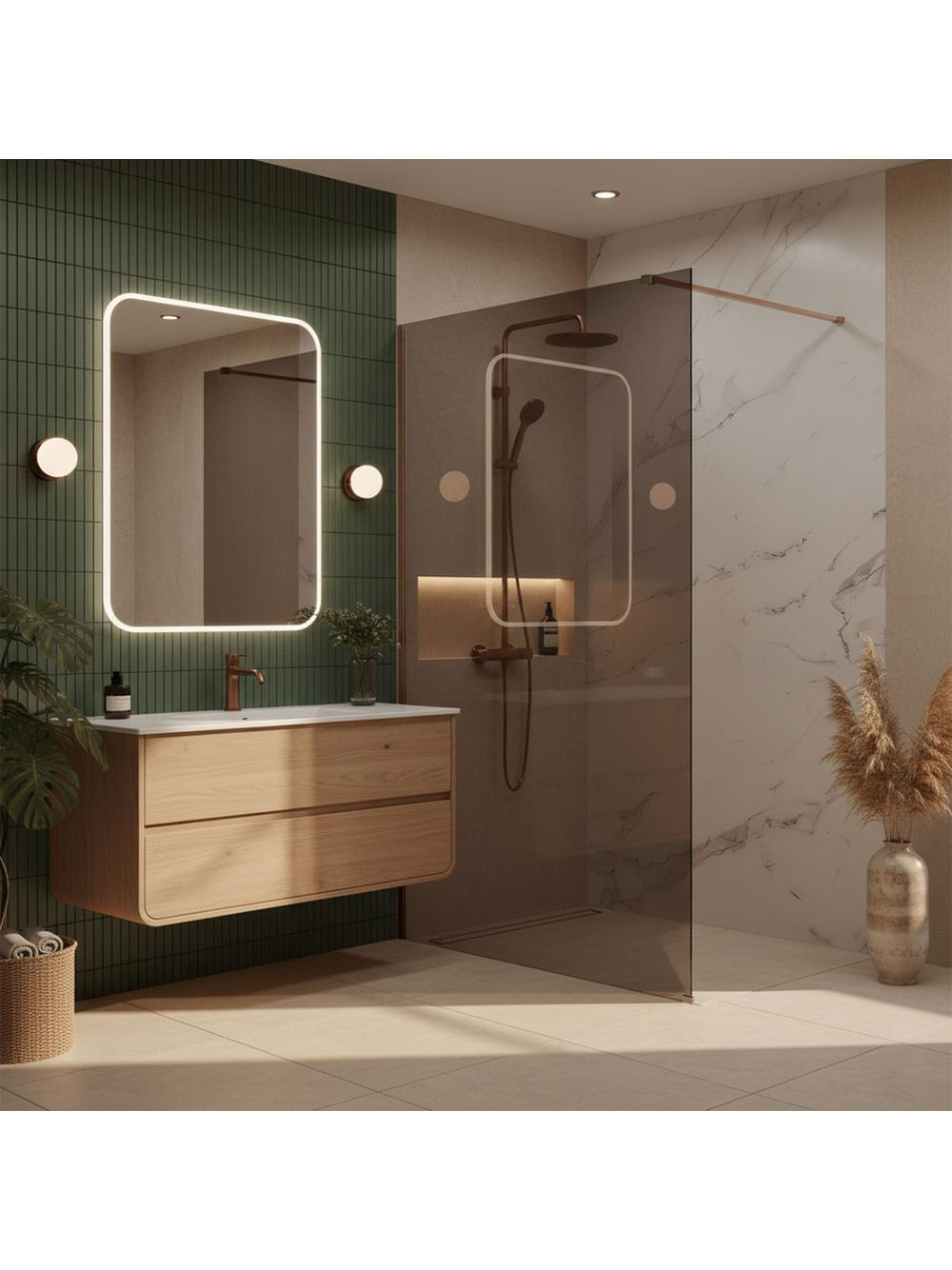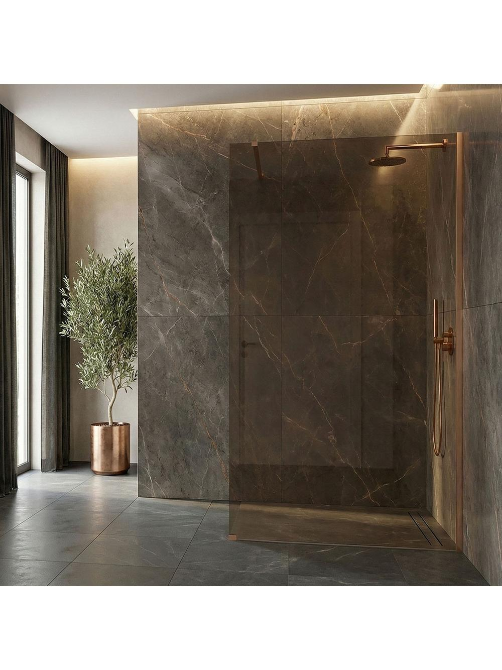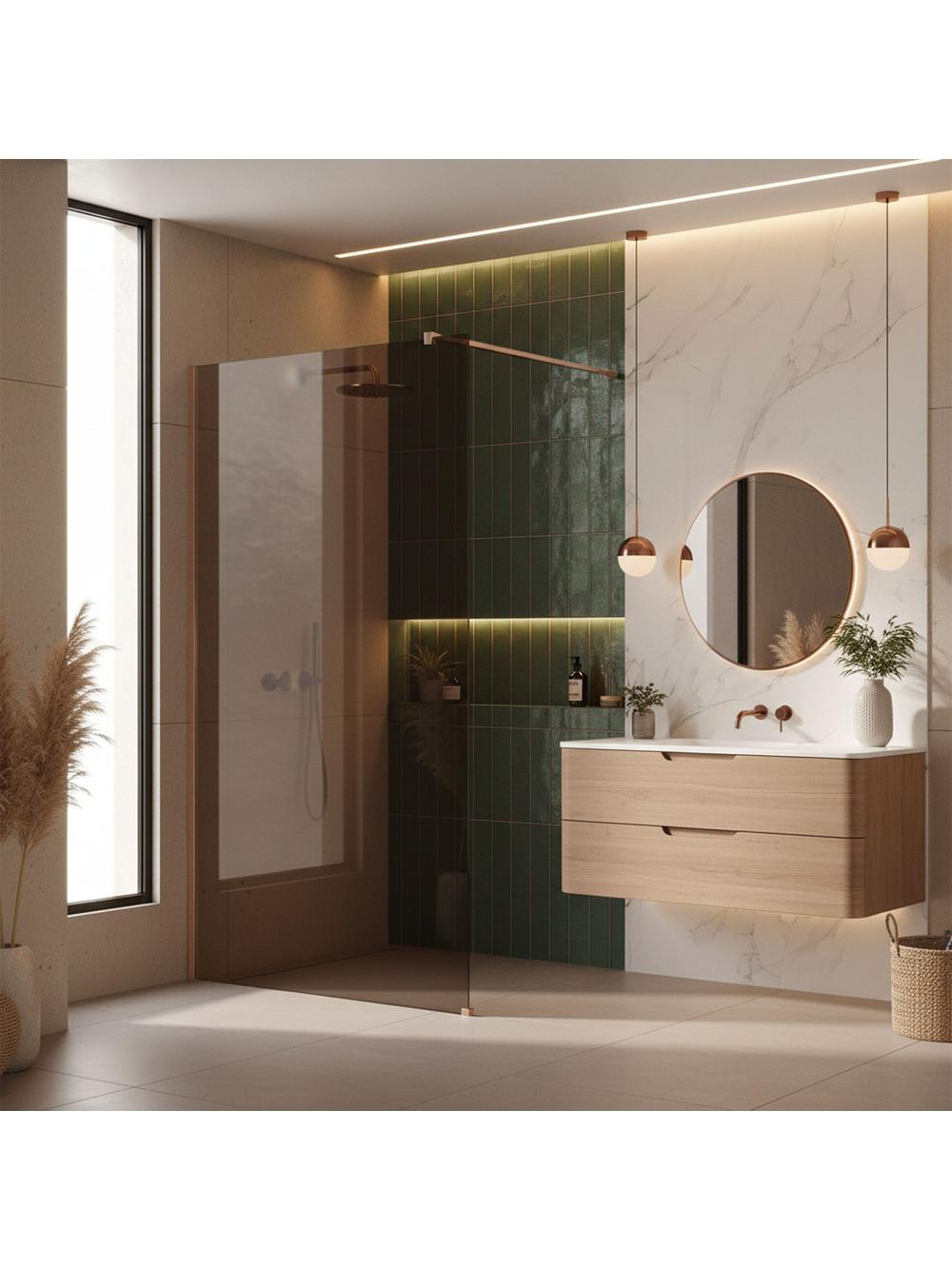 Visezi la o baie luxoasă și plină de căldură? Descoperă peretele de duș walk-in Rea Flexi într-o configurație elegantă: sticlă în nuanță maro fumuriu și profil în culoarea cuprului periat. Această combinație aduce un caracter unic spațiului dvs. intern. Construit din sticlă securizată de 8 mm, acesta oferă durabilitate și stabilitate. Realizat din sticlă securizată de 8 mm (maro fumuriu), acest perete de duș groas și sigur, cu tentă brună, aduce căldură și intimitate. Profilul din aluminiu în cupru periat oferă un finisaj luxos, perfect asortat cu sticla maro. Stratul Easy Clean facilitează scurgerea apei și protejează împotriva depunerilor de săpun și calcar. Peretele de duș poate fi instalat pe partea dreaptă sau stângă, pe cădiță sau direct pe pardoseală. Designul walk-in, acces deschis și construcția solidă, fac din peretele de duș Rea Flexi alegerea perfectă pentru cei care caută un stil rafinat. Combinația de detalii din cupru și sticla maro creează o atmosferă distinctă în zona de duș. Cu un aspect elegant și materiale durabile, acest produs oferă funcționalitate zilnică și estetică de înaltă clasă.