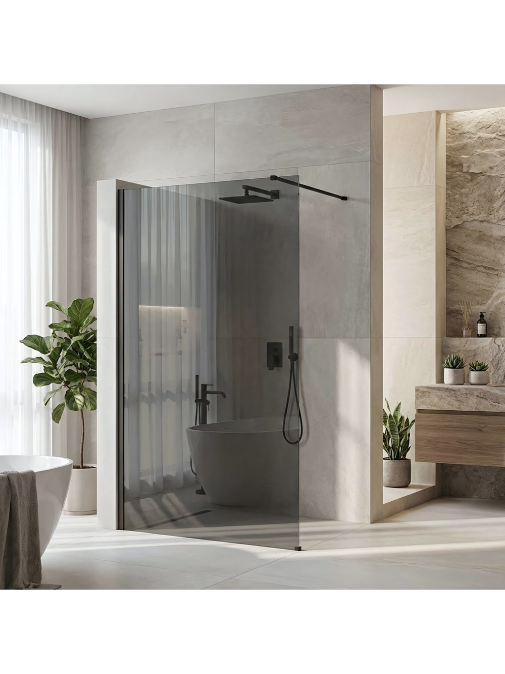 Dorești o baie modernă și industrială? Alege paravanul de duș walk-in Rea Flexi, cu o pană de sticlă în nuanța Gri. Această combinație solidă între profilul Negru Mat și panoul gri fumuriu aduce eleganță și discreție încăperii. Construcția din sticlă securizată de 8 mm asigură durabilitate și siguranță în utilizare. Paravanul oferă intimitate și un aspect modern băii tale, fiind ușor de întreținut datorită stratului Easy Clean. Alege calitatea și designul cu paravanul de duș Rea Flexi pentru un spațiu de duș luxos și modern.