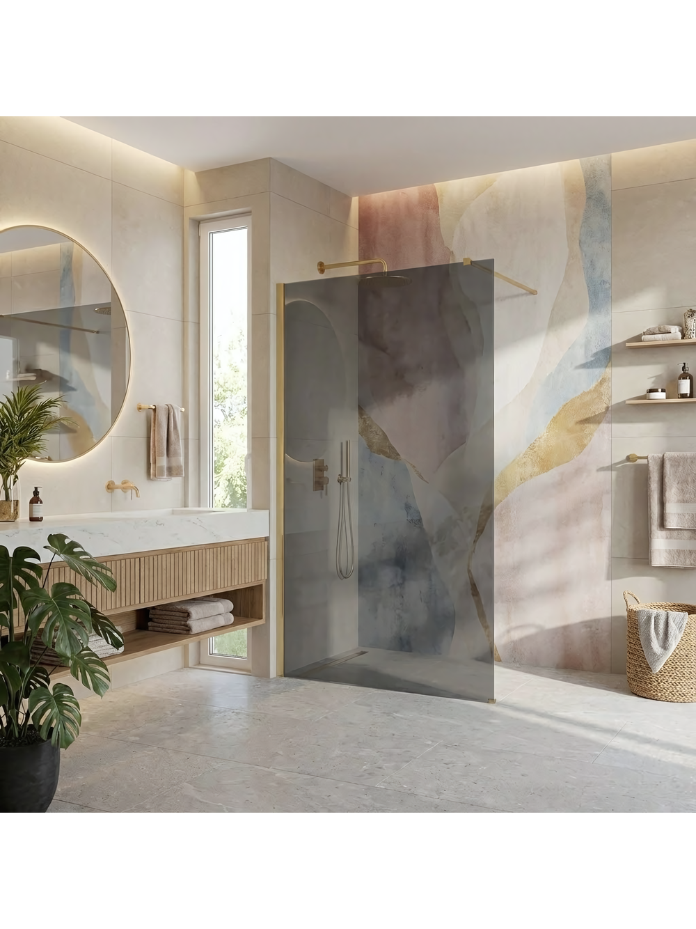 Paravanul de duș Rea Flexi este recomandarea pentru cei care caută combinații deosebite și sofisticate. Elementele auriu periate, alături de panoul de sticlă gri, creează o compoziție spectaculoasă. Datorită stratului Easy Clean și materialelor rezistente, acest produs îmbină estetica, funcționalitatea și ușurința în întreținere.