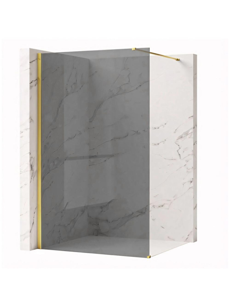 Beneficiile peretelui de duș includ sticlă securizată de 8 mm (Gri) care oferă rezistență și intimitate, profil din aluminiu Auriu Lucios ce adaugă un aspect spectaculos și strălucitor, strat Easy Clean care facilitează curățarea și menținerea curată a suprafeței, bară de susținere reglabilă pentru o fixare precisă și confortabilă, montaj universal ce permite configurarea pe dreapta sau pe stânga și construcție walk-in fără uși sau praguri pentru o intrare deschisă și ușor accesibilă.