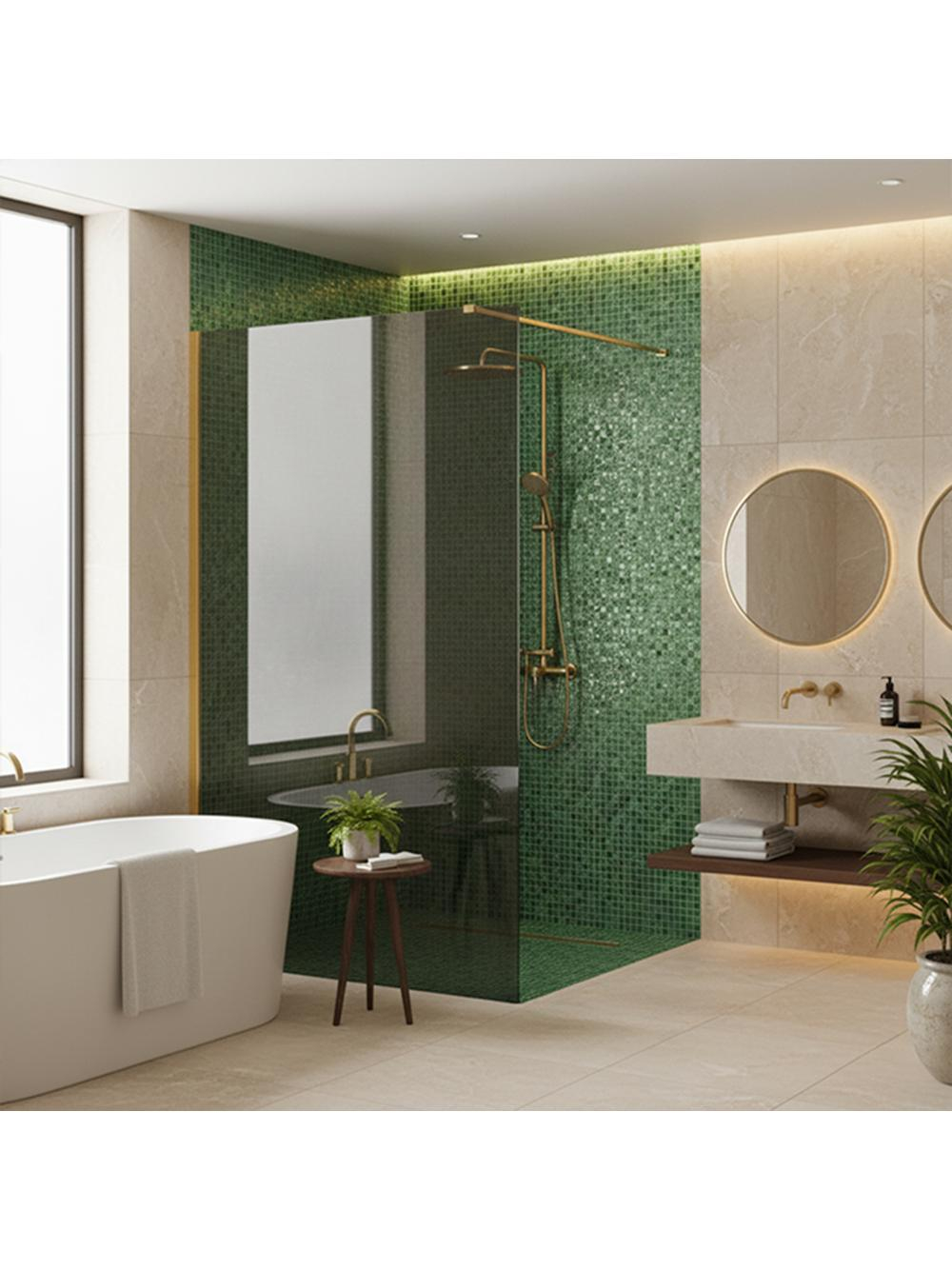 Puneți în valoare caracterul unic al băii dvs. alegând peretele de duș walk-in Rea Flexi cu sticlă Gri și profile în culoarea Auriu Lucios. Această combinație elegantă între panoul grafit închis și finisajul strălucitor conferă un aer modern și sofisticat interiorului. Cu o construcție din sticlă securizată de 8 mm, se garantează siguranța și durabilitatea pe termen lung.