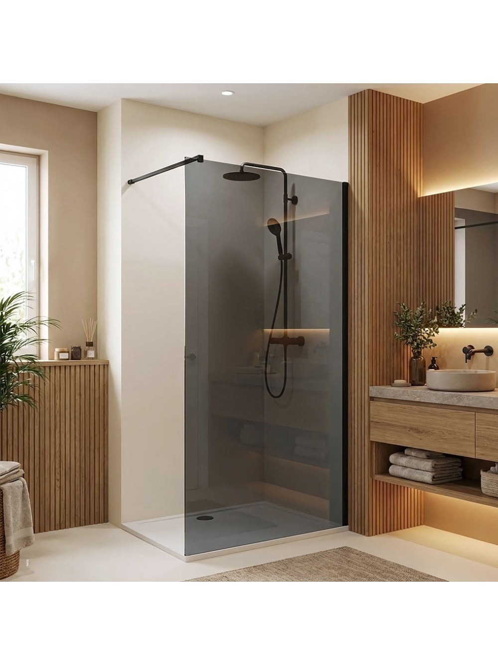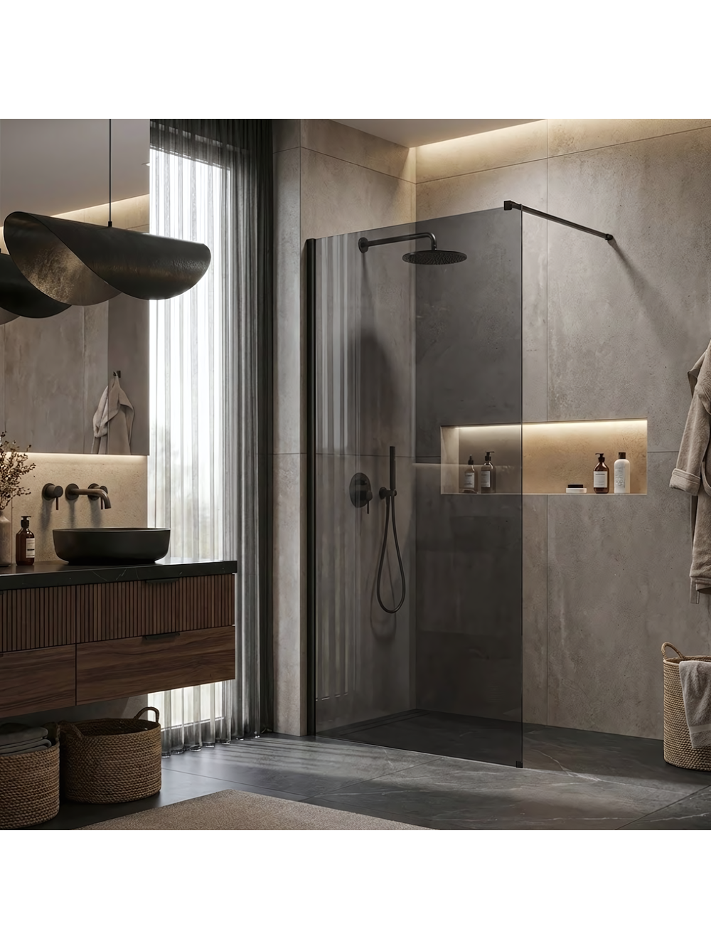 Transformă-ți baia într-un spațiu modern și industrial cu paravanul de duș walk-in Rea Flexi, cu sticlă în nuanță de Gri. Această elegantă combinație de negru mat și sticlă fumurie adaugă un strop de lux băii tale, oferind totodată și discretie. Sticla securizată de 8 mm garantează durabilitate și siguranță în utilizare. Cu stratul Easy Clean ce facilitează curățarea și protejează împotriva depunerilor, acest paravan se remarcă prin eleganța sa modernă și intimitatea pe care o conferă. Ideal pentru cei ce apreciază designul și funcționalitatea în același timp.
