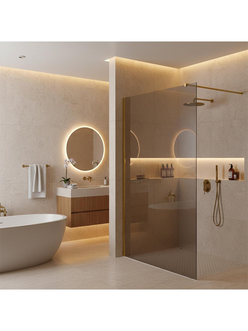 Subliniază caracterul distinctiv al băii tale optând pentru peretele de duș walk-in Rea Flexi cu sticlă Gri și profile în nuanța Auriu Lucios. Această asociere elegantă între panoul grafit închis și finisajul strălucitor conferă interiorului un aer modern și rafinat. Realizată din sticlă securizată de 8 mm, această construcție garantează siguranță și rezistență pe termen lung.