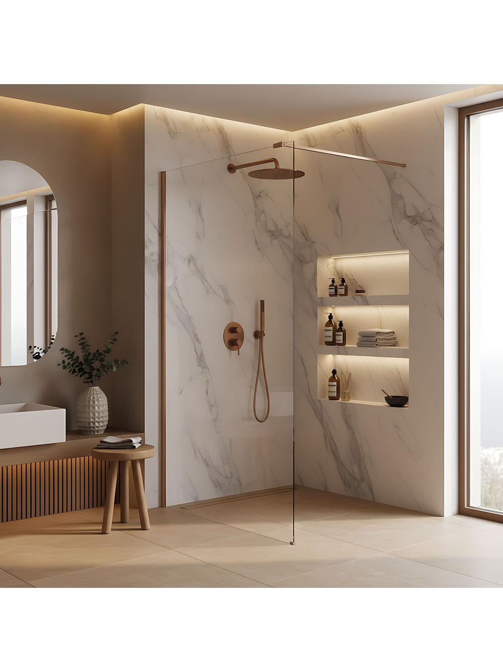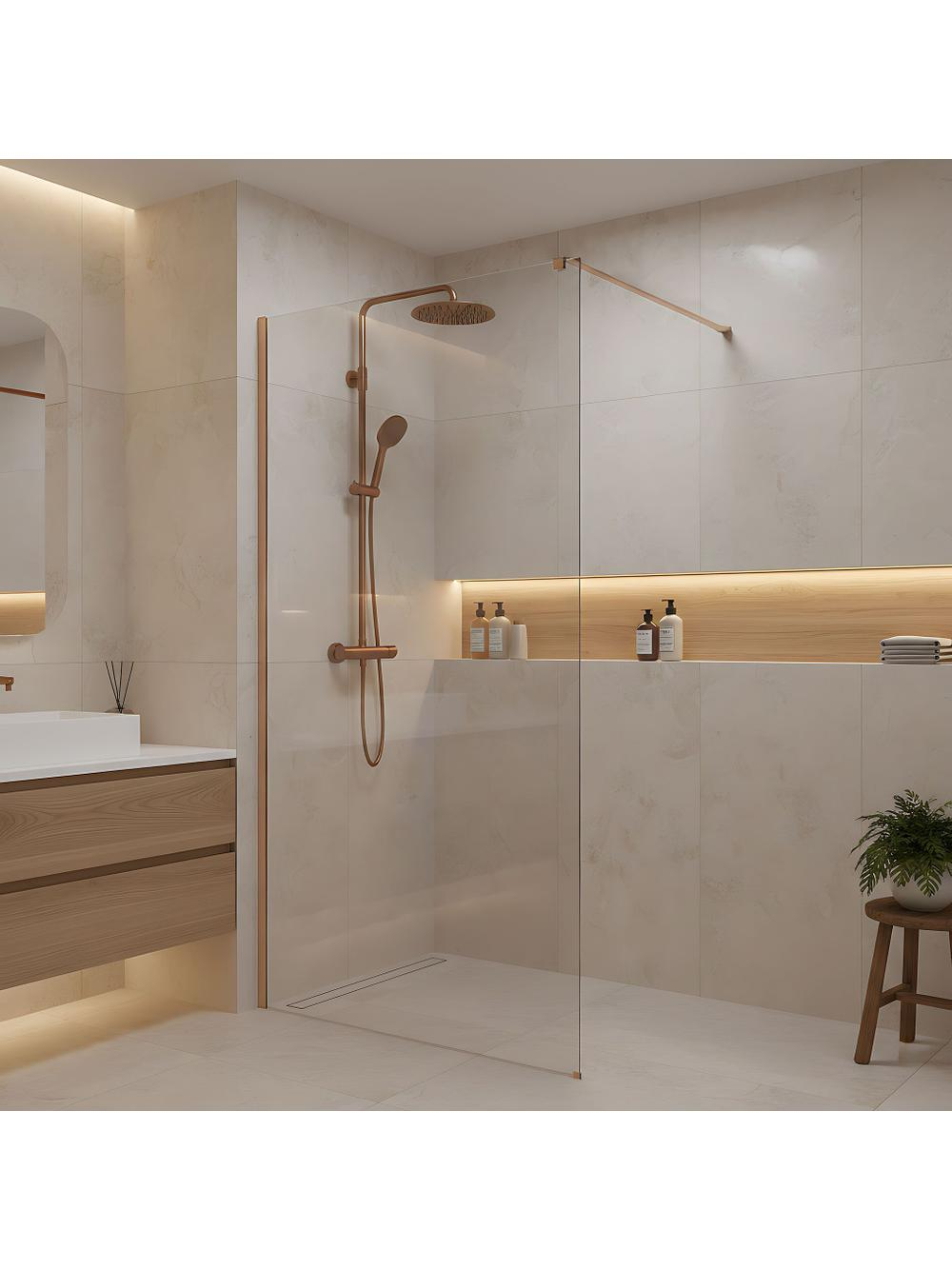 Ai visat vreodată la o baie plină de căldură și lux? Descoperă peretele de duș walk-in Rea Flexi într-o configurație inedită: sticlă transparentă și profil în culoarea cupru periat. Această combinație perfectă de formă modernă și finisaj elegant adaugă un plus de caracter unic interiorului. Cu o construcție realizată din sticlă securizată de 8 mm, acest perete de duș asigură durabilitate și stabilitate. Sticla securizată de 8 mm este groasă și sigură, fiind transparentă și neafectând vizual spațiul. Profilul din aluminiu în culoarea cupru periat oferă un finisaj luxos, perfect asortat cu sticla clară. Dotat cu strat Easy Clean, acest perete de duș este echipat cu o barieră hidrofobă invizibilă, care facilitează scurgerea apei și protejează împotriva depunerilor de săpun și calcar. Bara de stabilizare de 120 cm este ajustabilă, iar montajul este universal, putând fi instalat atât pe partea dreaptă cât și pe partea stângă, pe cădiță sau direct pe pardoseală. Cu o construcție walk-in modernă, fără elemente mobile, acest perete de duș Rea Flexi oferă acces deschis, confort și fiabilitate. Ideal pentru cei care apreciază un stil rafinat, produsul îmbină estetica de înaltă clasă cu funcționalitatea zilnică, fiind o alegere excelentă pentru orice baie.