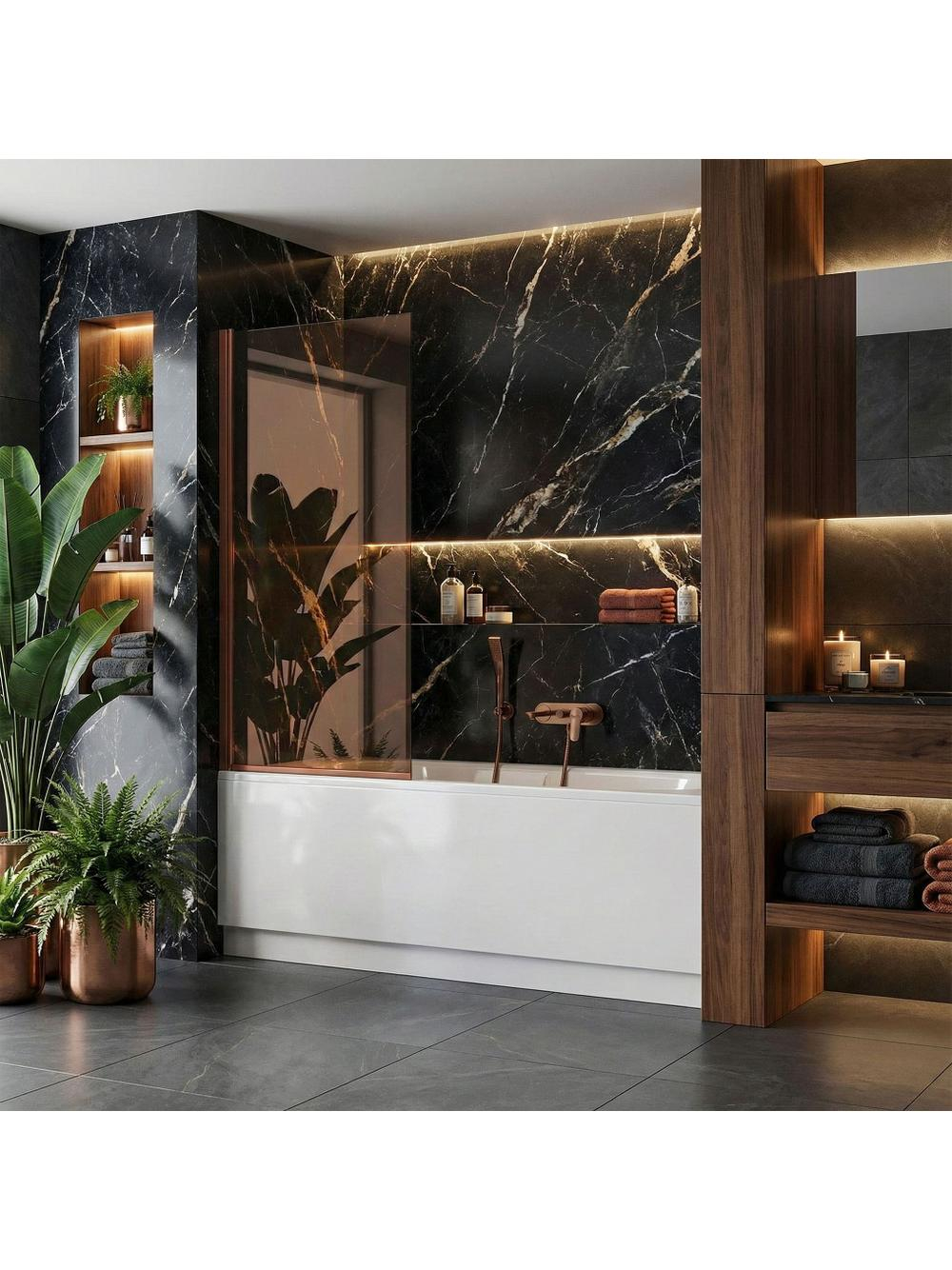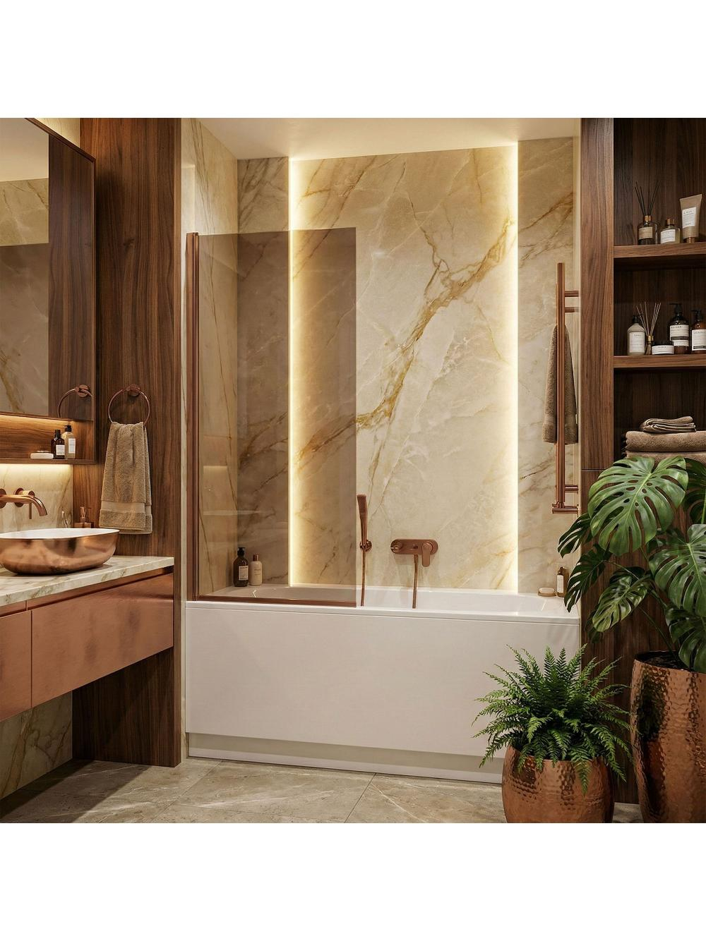 Descoperă un nivel nou de confort pentru baia ta cu paravanul de cadă Rea Elegant, cu un finisaj de cupru periat. Acesta este soluția perfectă pentru cei care doresc să combine funcționalitatea căzii cu confortul unui duș, fără a sacrifica design-ul luxos. Paravanul este echipat cu sticlă fumurie în nuanță de bronz, oferind un element decorativ impresionant care accentuează stilul oricărei băi moderne. Paravanele noastre de cadă oferă numeroase beneficii, inclusiv sticlă securizată de 5 mm pentru siguranță maximă, profile elegante din cupru periat pentru un aspect modern și cald, sticlă fumurie bronz pentru discreție și un efect vizual deosebit, versatilitate în utilizare pentru a crea o zonă de duș în cadă și protejarea băii de stropi, finisaj precis pentru estetică și funcționalitate. Alegând Rea Elegant, optezi pentru un produs ce îmbină practicul cu eleganța superioară. Montajul este simplu, iar întreținerea ușoară, fiind ideal pentru utilizarea zilnică. Transformă baia într-un spațiu de relaxare cu un plus de lux și funcționalitate.