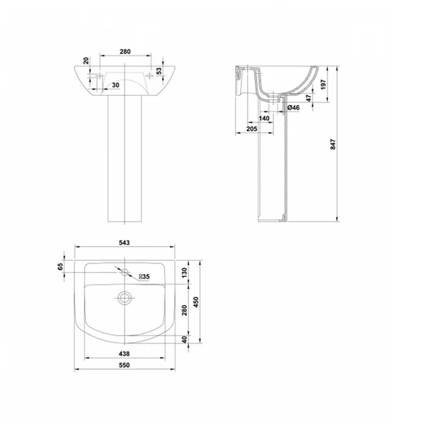 Specificatii tehnice Piedestal pentru lavoar Gala Smart alb: