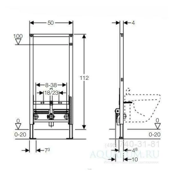 Specificatii tehnice Cadru metalic pentru fixare bideu cu inaltime 112 cm Geberit Duofix: