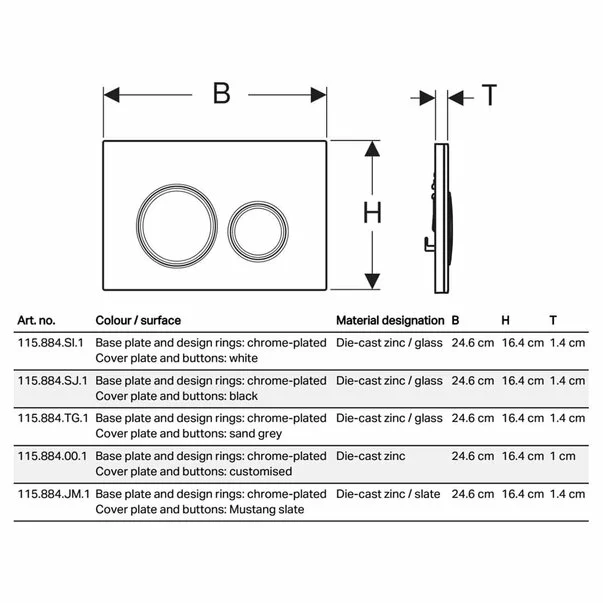 Specificatii tehnice Clapeta de actionare Geberit Sigma21 personalizabila: