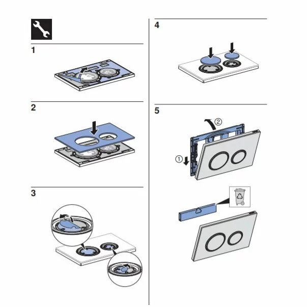 Clapetele cu butoane rotunde se combină perfect cu obiectele din ceramică sanitara cu forme ovale sau rotunde, în timp ce clapetele cu butoane pătrate se potrivesc cu vasele din porțelan sanitar rectangulare.