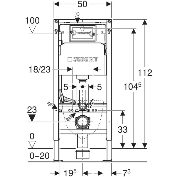 Specificatii tehnice Rezervor incastrat Geberit Delta 100, h-112 cm, adancime 12 cm si cadru cu actionare frontala: