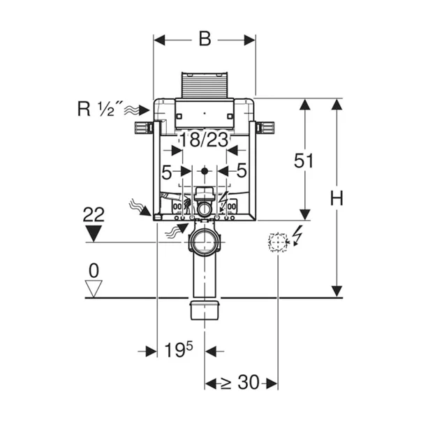 Specificatii tehnice Rezervor incastrat Geberit Omega cu cadru Kombifix pentru wc suspendat 82 cm: