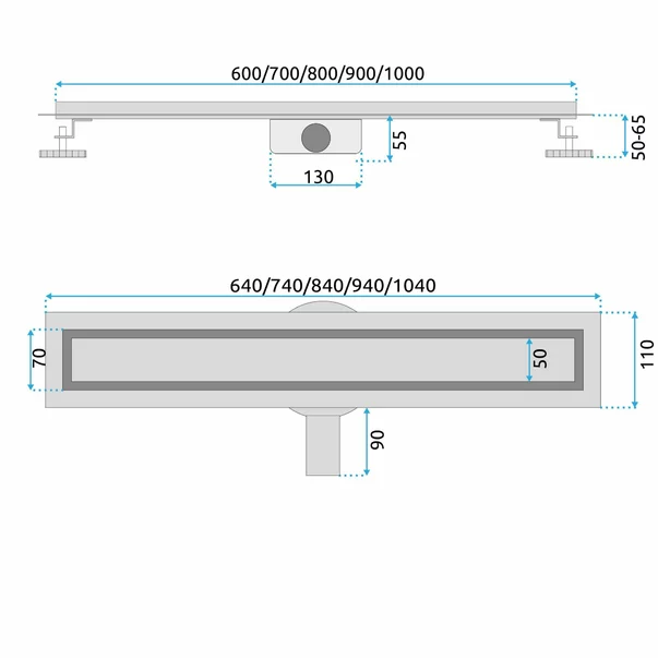 Specificatii tehnice Set rigola pentru dus plus capac auriu periat Rea Neox Pro 60 cm: