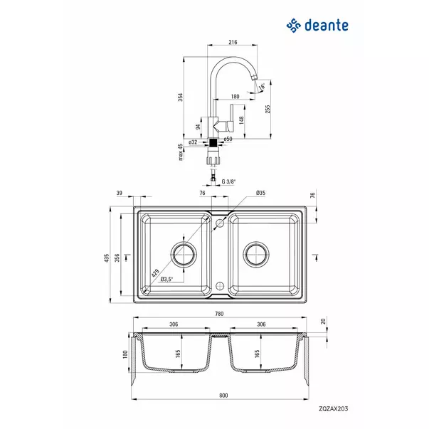 Specificatii tehnice Set chiuveta bucatarie 2 cuve si baterie Deante Zorba negru-grafit 78x43,5cm: