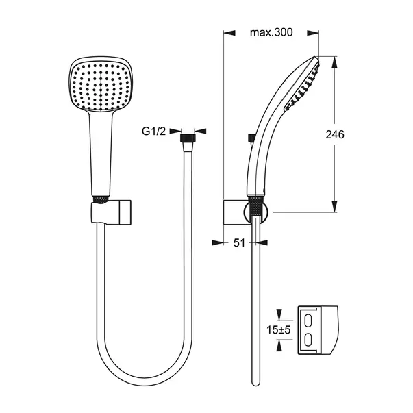 Specificatii tehnice Set de dus cu porter Ideal Standard IdealRain Cube crom lucios 1 functie: