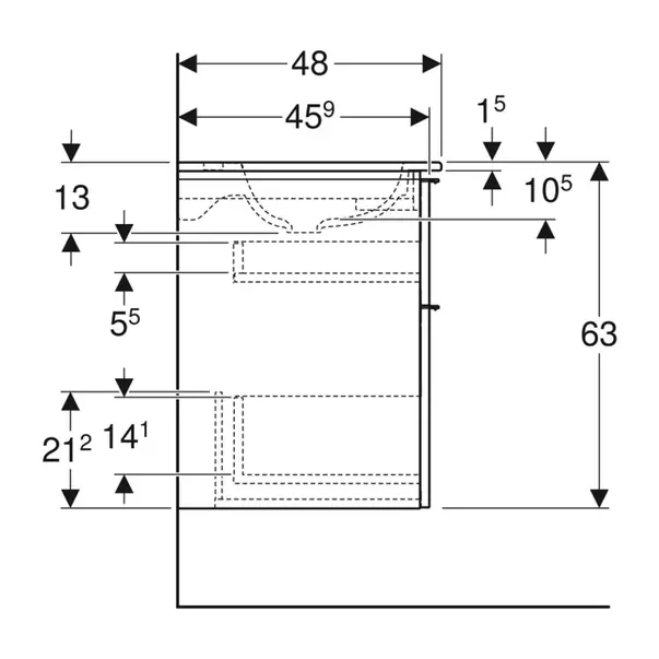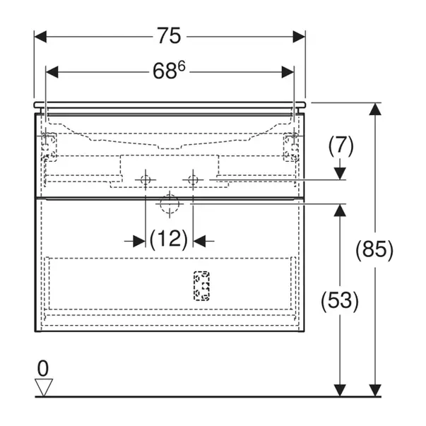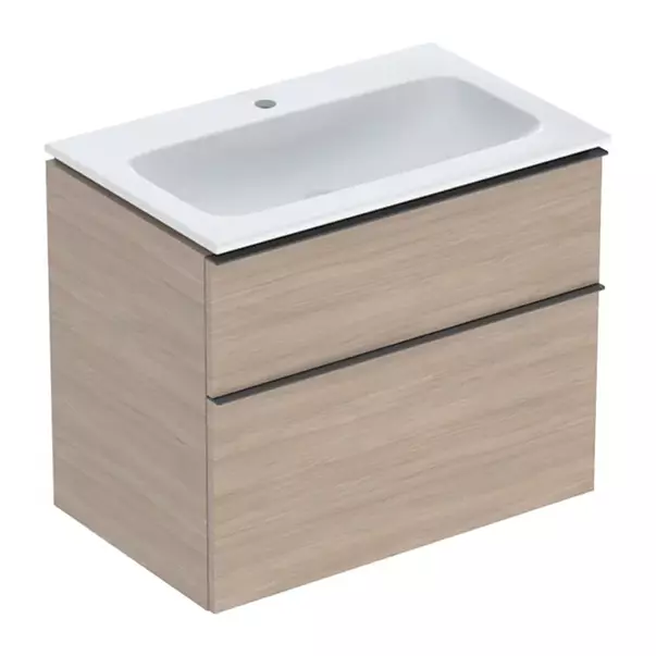 Specificatii tehnice Set dulap baza suspendat Geberit iCon finisaj stejar 2 sertare si lavoar 75 cm alb: