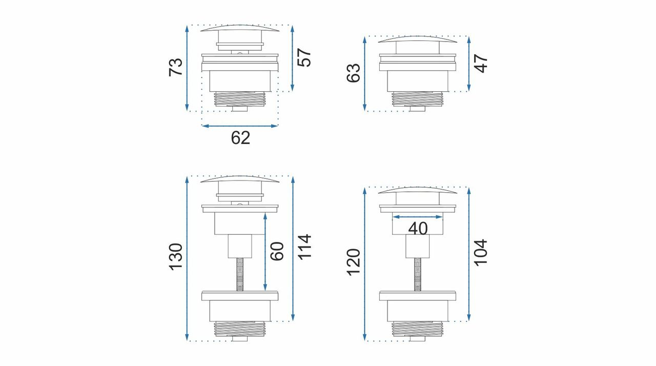 Dopul click-clack este universal și se potrivește la diverse tipuri de lavoare, cu sau fără orificiu de preaplin. Prin faza specială de producție, este protejat împotriva coroziunii, abraziunii și decolorării. Lavoarele potrivite pentru acest dop se regăsesc pe site-ul nostru.