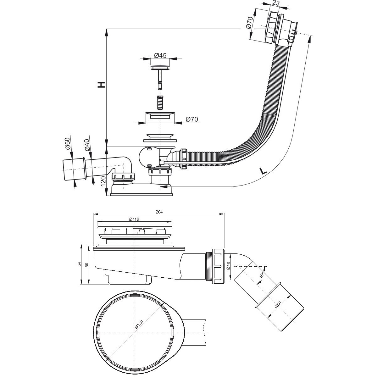 Specificatii tehnice Sifon cu preaplin automat universal cada Besco