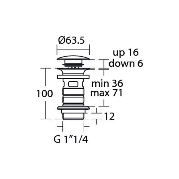 Ventil Click - Clack push to open G1 1/4” pentru lavoar fara preaplin