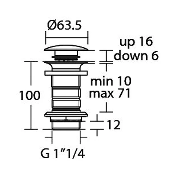 Specificatii tehnice Ventil Ideal Standard pentru lavoare fara preaplin negru mat push-open:
