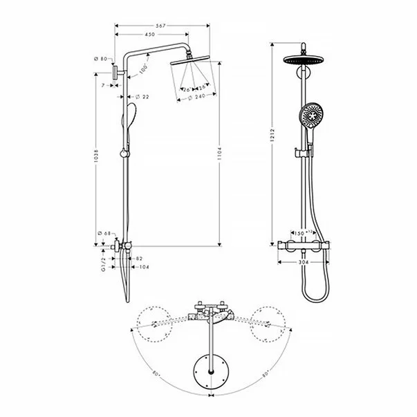 Specificatii tehnice Coloana de dus termostatata Hansgrohe Raindance Select S 240 crom lucios: